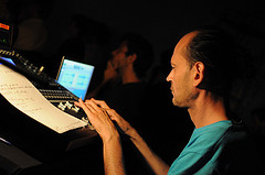 Dans ses compositions, il intègre des contraintes et des règles de jeu amenant l’interprète a oublier; oublier sa quête de virtuosité au profit de ses profondeurs intimes. Les musiciens se déplacent avec leurs instruments, font des mouvements étranges, ont l’air ailleurs, semblent jouer curieusement. Ils nous invitent a d’énigmatiques rituels, où la musique née de leur corps tremblant, s’insinue lentement dans nos esprits hypnotisés. Musique instrumentale, électronique, expérimentale, électroacoustique ou pédagogique, c’est en tout cas de la musique a vivre.